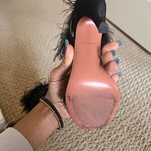 Amina Muaddi ADWOA FEATHER SLING BACK SATIN SANDAL (sz 37)
