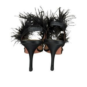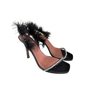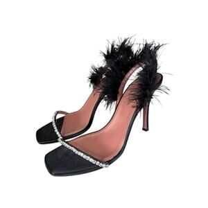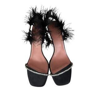 Amina Muaddi Adwoa Feather Crystal Satin Heels Black Size 40 US 10