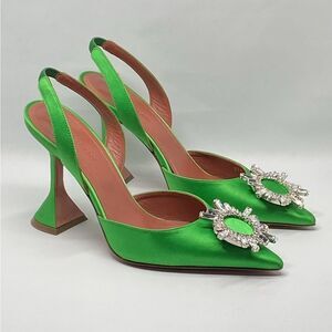Amina Muaddi Begum 95MM Satin & Crystal-Adorned Slingback Pumps size 37.5