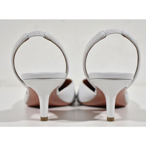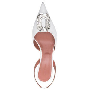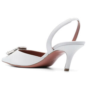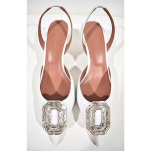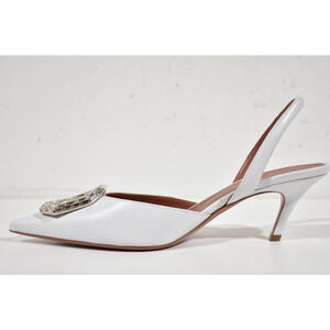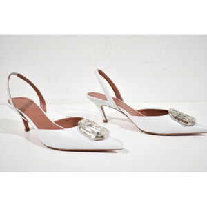 Amina Muaddi Camelia Sling 60 White Leather Crystal Slingback Low Heel Pump 40