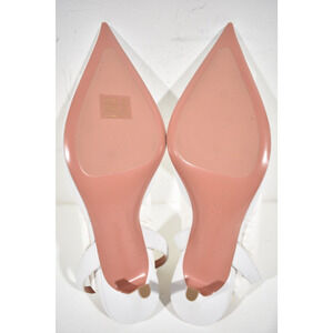 Amina Muaddi Camelia Sling 60 White Leather Crystal Slingback Low Heel Pump 41