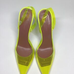 Amina Muaddi Holli Slingback Heels Yellow PVC Pointed Toe Women’s EU 38