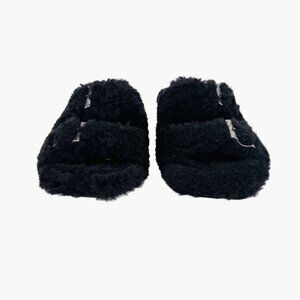 Amina Muaddi Millie Black Shearling Buckle Mule Slippers Heels Size 39.5 US 9.5