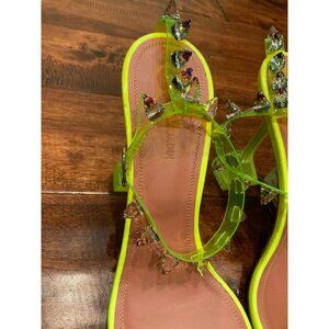Amina Muaddi Neon Yellow Julia Heels W/ Spiked Ankle Strap, Size 40 (EU) 10 (US)