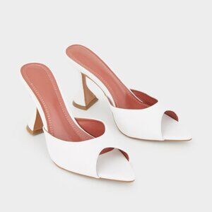 Amina Muaddi White Pointed Heel Patent Leather Mules Sandal Block Heels Wedding