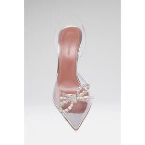 Amina Muaddi Women's Rosie Glass Sling Transparent PVC Shoes Heels Size 7 . Slightly Smaller Than Seven Can Fit 6.5". Priced Accordingly. Top Bow was Missing And Replaced With A generic Crystal Bow. Not Used Checked the Bottom 95MM CL PLEXI HEEL. Crystal embellished bow accessory. Pointed toe. Fits slightly small to size - we recommend a size larger. Made in Italy. Upper: 90% PVC and 10% LAMBSKIN. Lining: 100% Goat. Sole: 70% Leather and 30% Rubber.