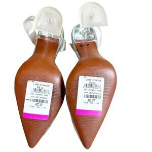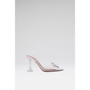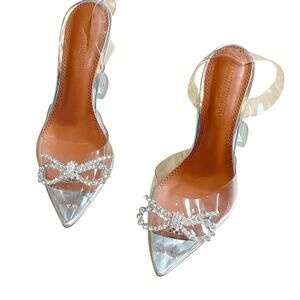 Amina Muaddi Women's Rosie Glass Sling Transparent PVC Shoes Heels Size 7 Flawed