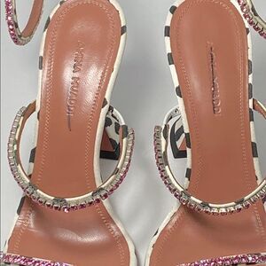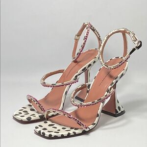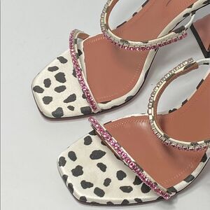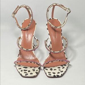 Amina Muaddi Gilda Crystal-Embellished Dalmation-Print Satin Sandals size 36