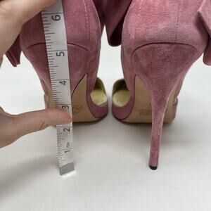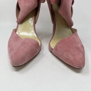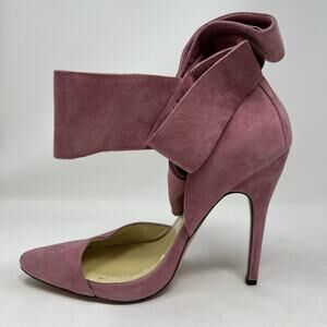Aminah Abdul Jillil Pink Suede Bow Pumps Stiletto Heels Pointed Toe Size 11