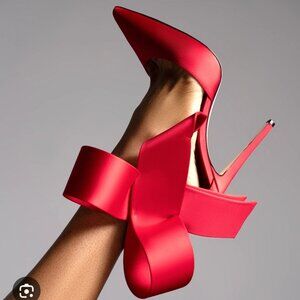 "EUC" Gorgeous Red Satin Over Leather Ankle Bow Pumps By Aminah Abdul Jillil. Pointed Toe & Cut Out Sides, 2" Wide Sturdy/ Not Flimsy Wide Magnetic Snap Closure Bow Ankle Strap, Satin Over Leather, Leather Lining, Cushioned Foot Bed & Soles, Satin Wrapped 4" Heel, Great Condition, No Wearing on Uppers, Light Scuffing to Soles, Worn Once to Event:) Rt.598.00 approx. Size 9, Foot Bed Measures 10" for Reference. * Your Perfect Holiday, Event, Party Shoe! ( Last 2 Stock Photos/ This Shoe Lower Heel)