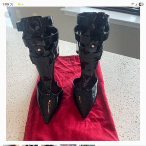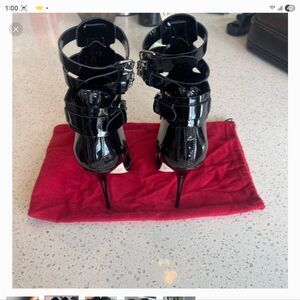 Elevate your style with these elegant black patent leather heels. Perfect for any occasion, these shoes offer a chic and sophisticated look.