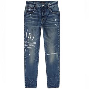 AMIRI Amiri Arts District Embroidered Jeans 'River Indigo' Skinny Jeans Dark Blue Distressed men designer jeans embroidered 36