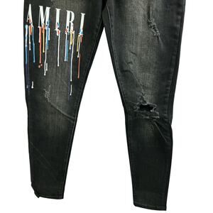 Amiri Black Paint Drop Core Logo Skinny Jeans Size 0/30 Distressed New