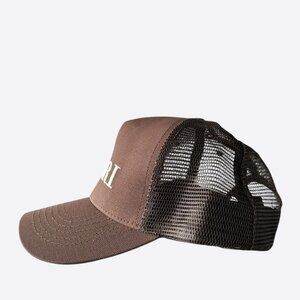 Amiri Brown & White Logo Trucker Hat