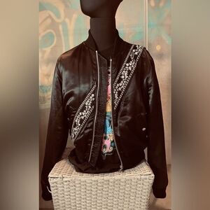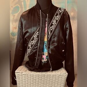 This bomber jacket is highly exclusive and very rare. You will never walk into an event or party and see someone wearing this unique silk blend jacket.