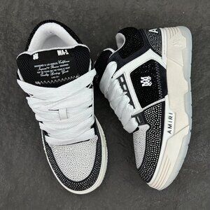 Leather upper with crystal embellishments, double lacing, MA logo detail, and back logo. Rubber outsole.