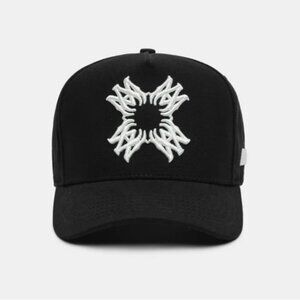 Adjustable back. BLACK hat, black brim & White Amiri Quad M.A. Embroirdered logo on the front and side.