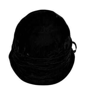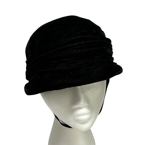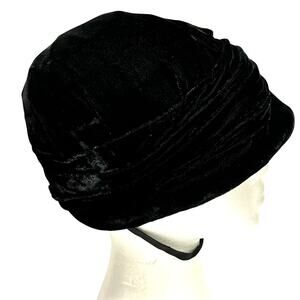 Vintage Amish Mennonite modest black velvet bonnet - a handmade hat for cold weather - with pleated fabric lining and hook & eye closure on the chin strap. This piece is in excellent condition - minor wear - no damage or flaws - perfect to wear or add to a collection today!