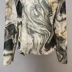 Amisu Sheer Top Marbled Print Gray Long Sleeve Mock Neck Clubbing Festival Woman
