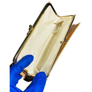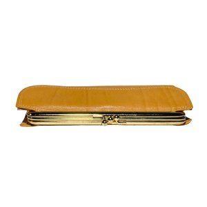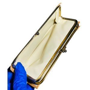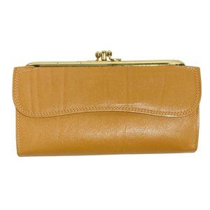 Vintage Amity Tan Billfold Wallet Metal Clasp Cowhide Leather Change Purse Clutch Ladies Womens Checkbook Holder