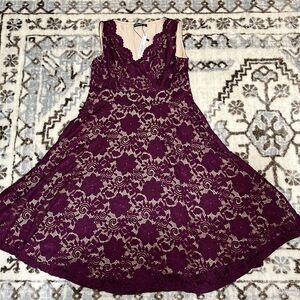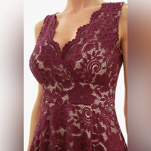 AmélieBoutik Women Floral Lace Overlay Fit and Flare Dress