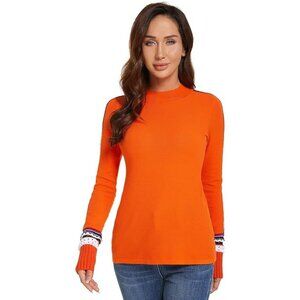 AmélieBoutik Women Mock Neck Fair Isle Trim Long Sleeve Pullover Knit Sweater