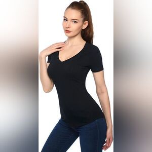 AmélieBoutik Women Slim Fit Chest Pocket Shirt V Neck Short Sleeve Basic Top L