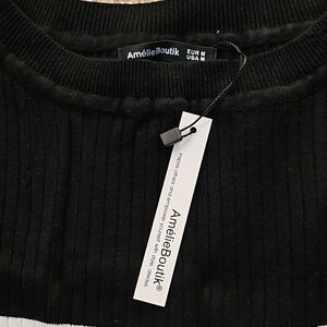 Amélieboutik Women Thick Striped Long Sleeve Crew Neck Sweater M