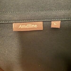 Cozy and chic Amélline cardigan in a beautiful deep teal shade. Features a soft, stretchy fabric blend (65% viscose, 35% nylon, 5% spandex) made with European fabrics for a luxurious feel. Designed with a shawl collar, open front, cuffed long sleeves, and convenient front pockets. Perfect for layering over dresses, blouses, or tees for a stylish yet comfortable look.