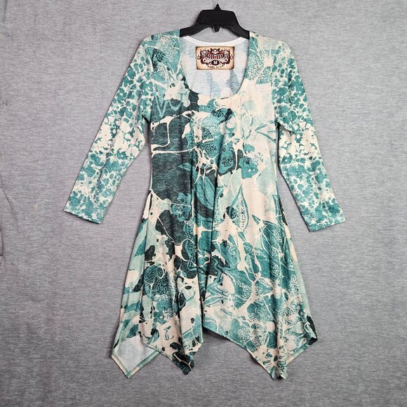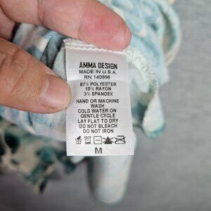 Amma Design Women's Colorful Abstract Mini Blue Dress Made in the USA Sz M