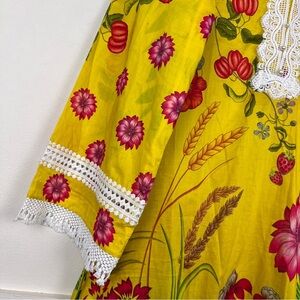 Ammara Khan Floral & Fruit Printed Lace Trim Pakistan Made Formal Kaftan