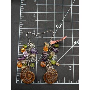Ammonite Fossil Glass Gemstone Peridot Amethyst Bead Multicolor Cha Cha Earrings