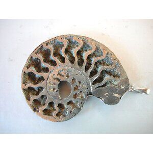 This ammonite fossil pendant is encased in a sterling silver bezel, offering a unique blend of natural history and elegance. Its captivating design is suitable for both casual and formal wear, making it a versatile addition to any jewelry collection.