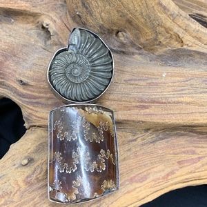 Ammonite Pin/Pendant Combination with Jasper Stone