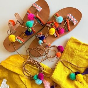 Ammos Genuine Leather Greece Pom Friendship Charm Gladiator Wrap Sandal Size 7