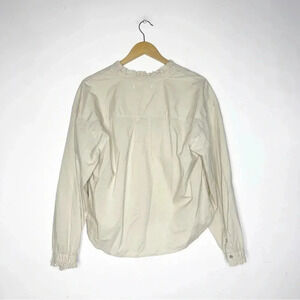A timeless blouse that will never go out of style.The ROSA SHIRT is a slightly oversized, pull over shirt with a boxy, easy fit. Features a ruffle detail at the collar and cuff for an added feminine detail. Crafted 100% stonewashed cotton poplin.