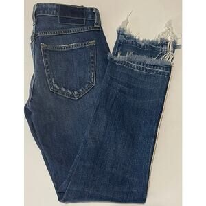 Amo Women's Babe Old School Distressed Frayed Hem Cropped Piping Jeans Size 24
