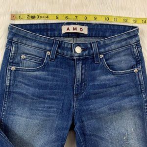Amo Women's Size 25 Medium Wash Dive Bar Destroy Skinny Twist Zip Denim Jeans