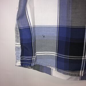 Amongst Others Cotton Blend XL Short Sleeve Button Front Plaid Shirt. Condition is "Pre-owned". Small Hole At Lower Right Front . See Photos. Cleaned And Disinfected. Shipped with USPS First Class.