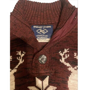 Amongst Others Reindeer Sweater Christmas Burgundy Tan Winter Men’s Medium