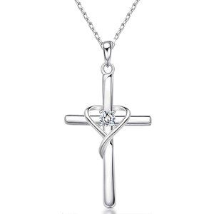 AmorAime 925 Sterling Silver Cross Necklace for Women Men 5A CZ Birthsto…