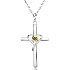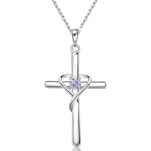 AmorAime 925 Sterling Silver Cross Necklace for Women Men 5A CZ Birthsto…