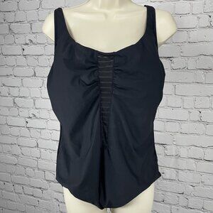 Amoressa Black Padded Bra Gold Accent Mesh Cut Out One Piece Swimsuit Size 16W