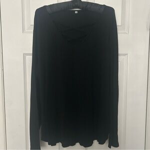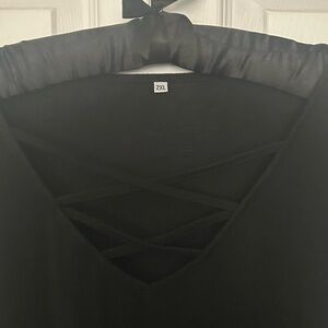 Amoretu Womens' Black Plus Size (2XL) Top with Long Sleeve Criss Cross Neck EUC