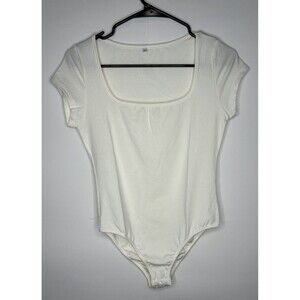 Amoretu Women's Short Sleeves Snap Closure Bodysuit Ivory SIZE Medium NWOT