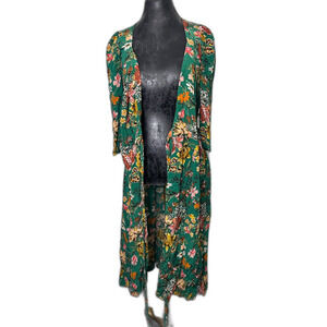 Elevate your wardrobe with this stunning Amour Vert 100% silk wrap midi dress in size M. Featuring a vibrant green base with a richly detailed floral print, this piece is a perfect fusion of eco-luxury and effortless boho style. Made in the USA with sustainably sourced silk, the dress offers a flattering fit with an adjustable waist tie and flowy silhouette that transitions beautifully from casual daytime to elevated evening wear. Lightweight, breathable, and soft to the touch, it's ideal for spring, summer, or layered fall looks. Garment care is simple: hand wash cold, lay flat to dry, warm iron as needed. Whether you're headed to a brunch, garden party, or vacation getaway, this floral silk wrap dress is a timeless statement piece that delivers elegance with comfort.