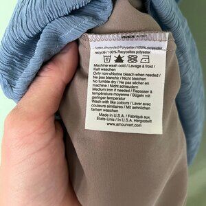 Amour Vert Blue Crinkle Belted Double Lined Slip Dress Size Large L