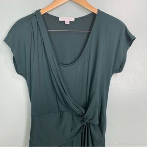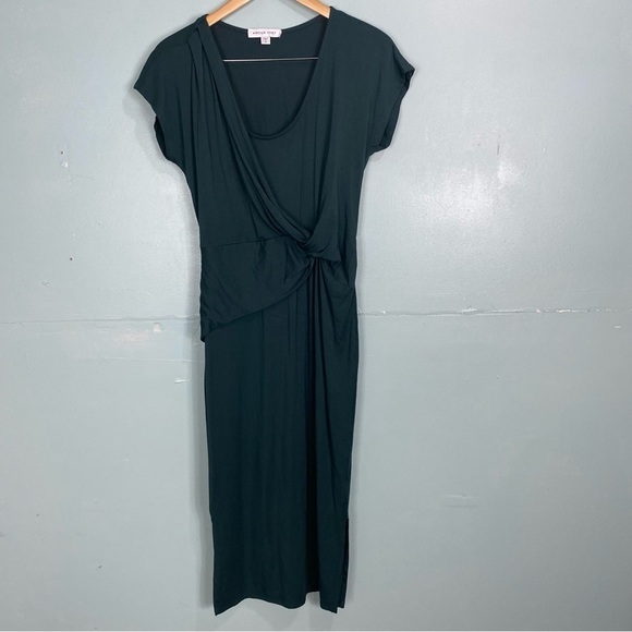 Amour Vert Hali Midi Dress Front Knot Short Sleeve Stretch Sz S Comfort