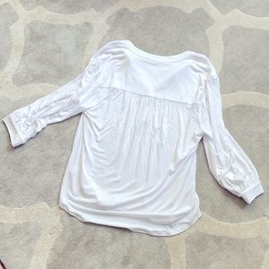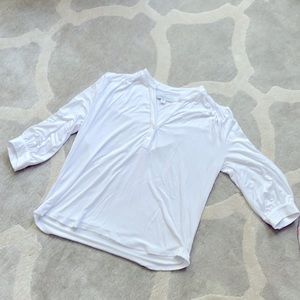 Amour Vert Henley Button V Neck 3/4 Sleeve Blouse Top Shirt L