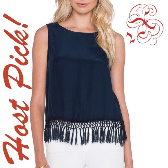 Amour Vert NEW Silk Tank Top Fringed Blouse Navy NWT Women's LπHPπ